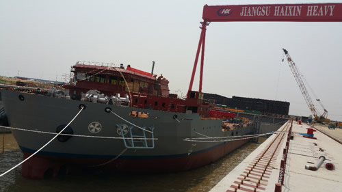 On June 18th, Ship owner and Haixin Shipyard shared a grand festival. 1000T Revolving Floating Crane Vessel achieved the launching node, which is a multi-functional special engineering vessel and designed mainly for the emergency rescue and salvage in the Three Gorges Reservoir area of the Yangtze River .This vessel is a major national investment to the Yangtze River Waterway business, moreover, the leading ship after Haixin Shipyard relocated successfully and positioned itself as the first rate shipyard. It was expected that the new-built vessel will be delivered and joint in the security guarantee fleet of the Yangtze River Waterway this year.