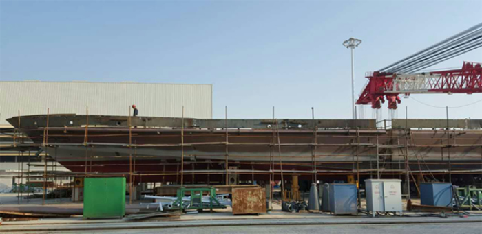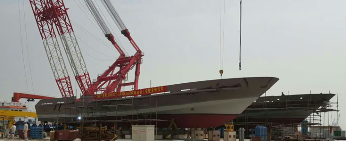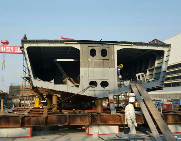 目前,先開工的HX023船的鋁質(zhì)上建已經(jīng)制作完畢,等待吊裝,后開工的HX022船的機(jī)電設(shè)備已逐步到廠。兩艘公務(wù)船的美麗線型,已在總裝平臺上展現(xiàn)雛形。