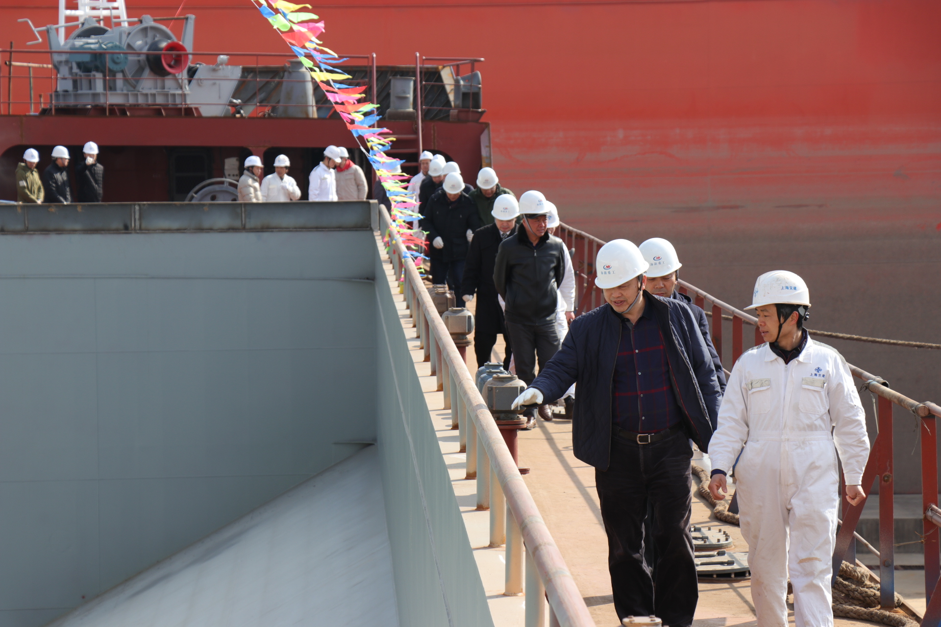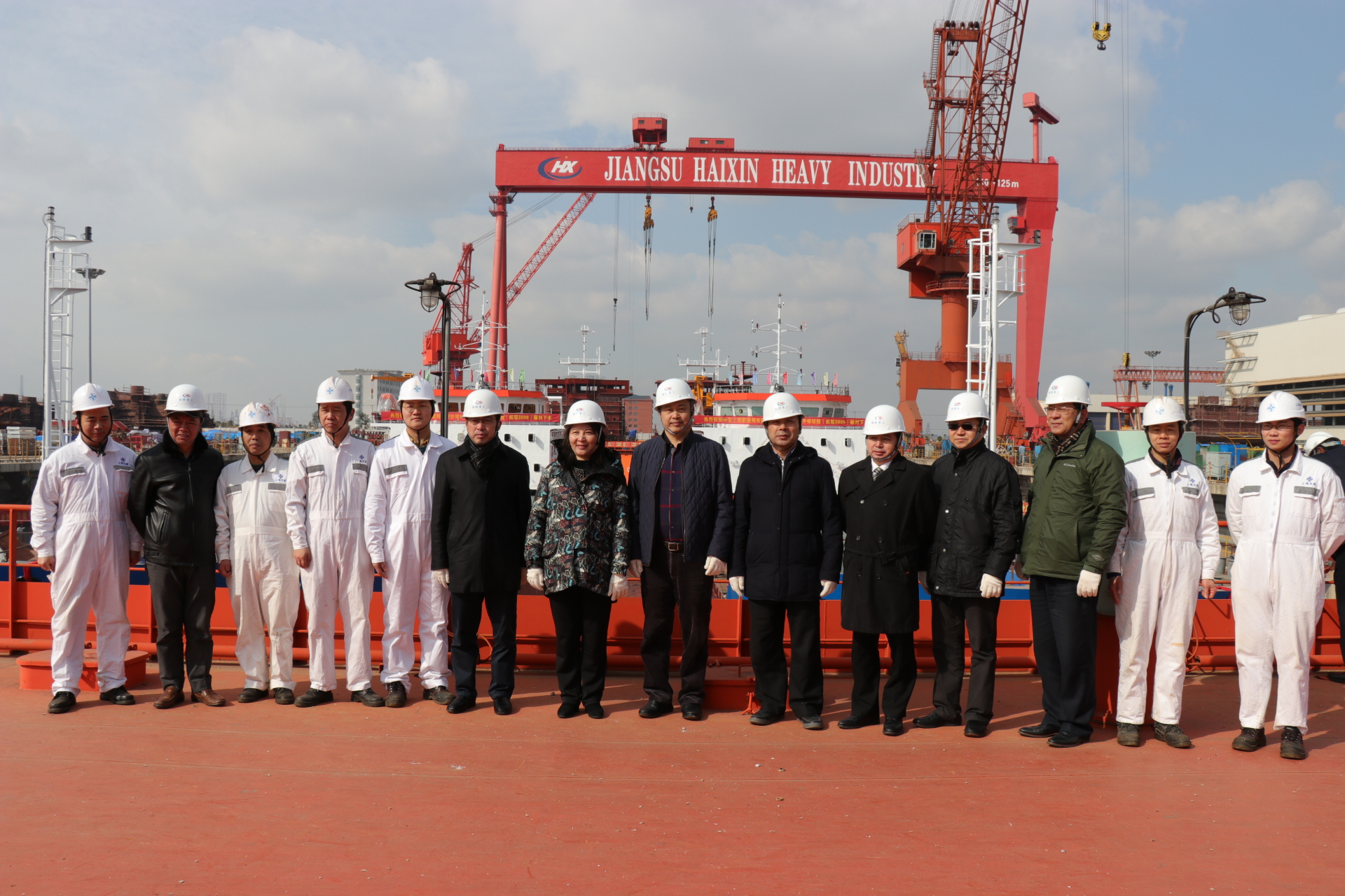 2018年2月3日上午,江蘇海新船務(wù)重工有限公司隆重舉行了承建中交上海航道局兩艘3000m³自航開體駁下水儀式。海門市市長郭曉敏女士,中交上海航道局侯曉明董事長,上海交通建設(shè)總承包公司周顯田總經(jīng)理,江蘇海新船務(wù)重工有限公司董事長孟咸宏等嘉賓出席了船舶下水儀式。