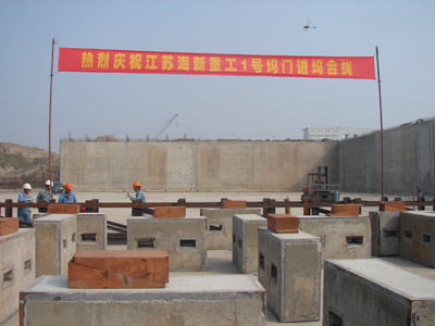 2011年12月20日上午9:30分,江蘇海新船務重工有限公司工地上鞭炮齊鳴。900噸龍門吊頂升儀式在這里隆重舉行。高高矗立的頂升架上,十六組鋼索在風中發(fā)出輕快的刷刷聲,仿佛氣勢磅礴...