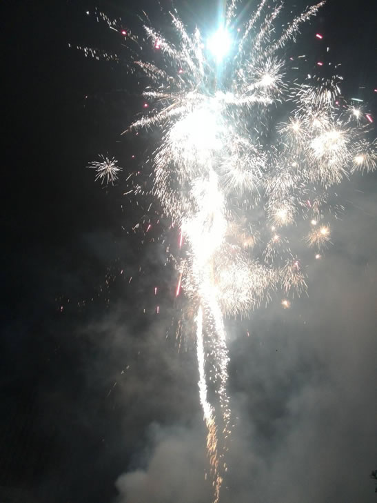 煙花太美,美得有了些魅惑的味道。本來黑黑的夜就充滿了神秘與誘惑,在這缺少七色光的暗夜中,大自然感到難以展現(xiàn)自己的美麗,把舞臺讓給了煙花。于是夜空中千姿百態(tài)的煙花開出一片嫵媚,旋出一團團魅影。她如展翅的鳳凰又或翩翩起舞的精靈,似乎在祝福著我們海宏建設(shè)和海新重工。